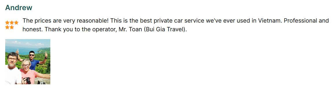 • Dịch vụ gồm: Xe riêng đưa đón tận nơi, lái xe, phí cầu đường