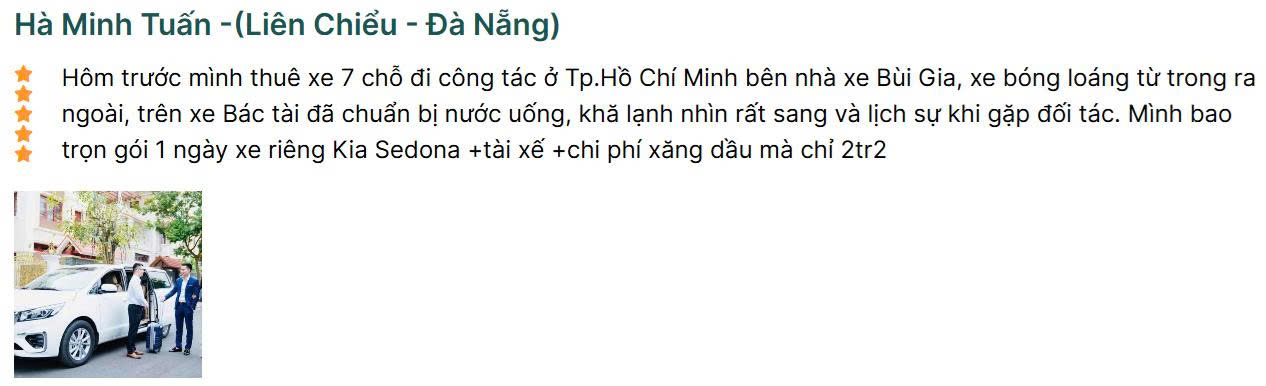 • Phục vụ: Tài xế liên hệ xác nhận trước giờ khởi hành, lái xe an toàn và hỗ trợ hành lý nhiệt tình.