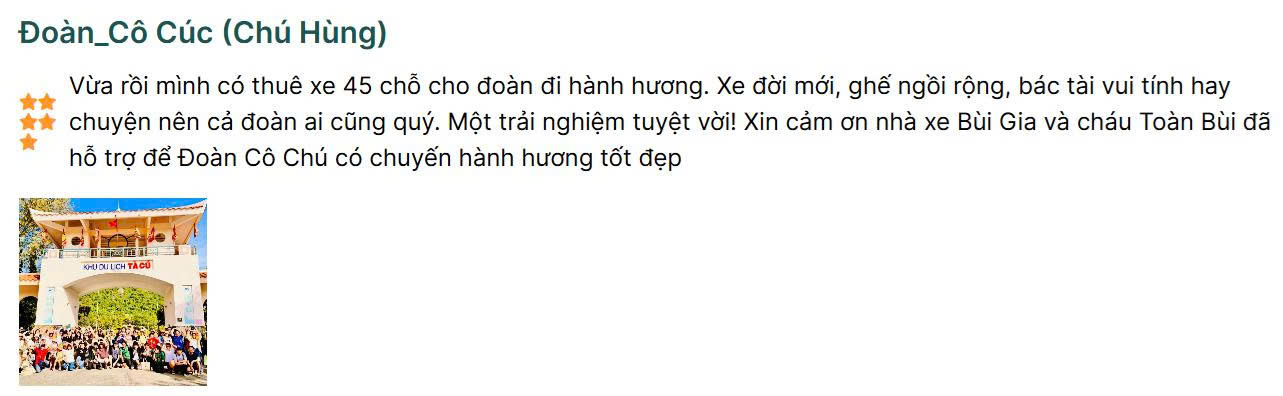 Với kinh nghiệm nhiều năm trong lĩnh vực vận chuyển du lịch, Bùi Gia Travel cung cấp đa dạng dòng xe từ 4 – 7 – 16 – 29 – 45 chỗ và limousine cao cấp, đáp ứng trọn vẹn mọi nhu cầu từ gia đình nhỏ đến đoàn đông người.