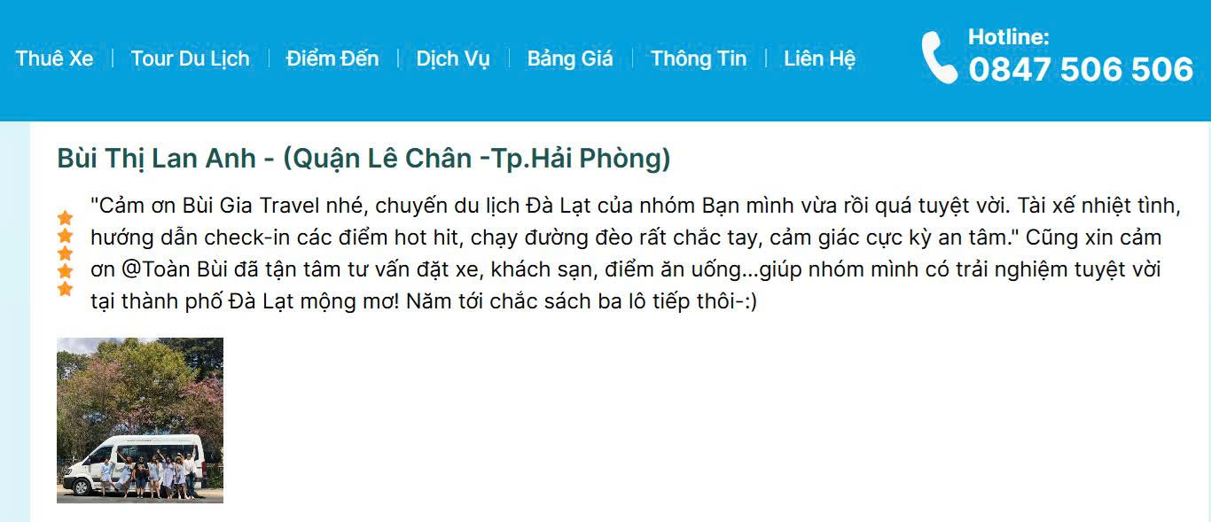 Cam Kết Khi Thuê Xe Đi Tour Gia Đình Tại Bùi Gia Travel